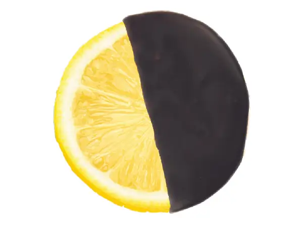 Limón confitado 60% (limón 25%, jarabe de glucosa-fructosa, azúcar, acidulante: E-330, conservador: E-202 y E-223 (sulfitos)) y cobertura de chocolate negro 40% (pasta de cacao, azúcar, manteca de cacao, emulgentes (lecitina de soja y E-476) y aromas)